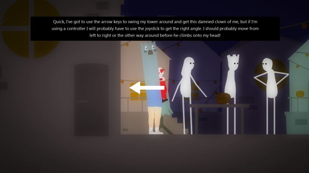 For a game with the title of “Tower Guy”, I had two expectations coming into it; I’d be playing as some variation of a half-guy, half-tower, and that it was going to be the right kind of strange. Beyond how my mind agonized over how the parents made it work (holy crap), not only was I not disappointed, but for the 10 min or less playtime over the entire experience, I managed to be hit with some of my favorite pop-culture memories, right up to the punchline.