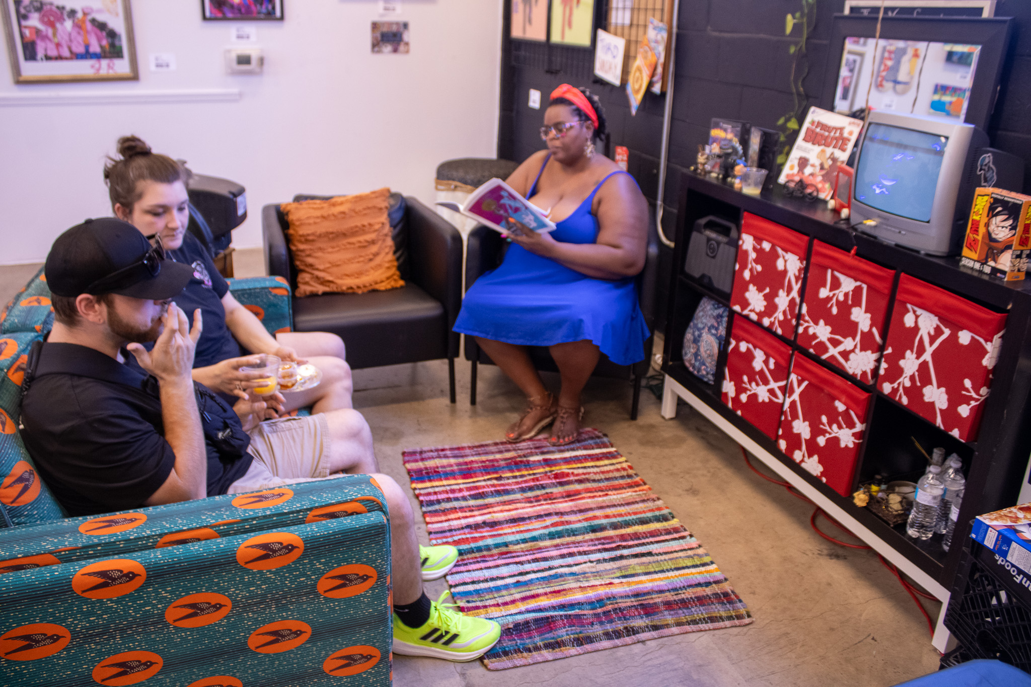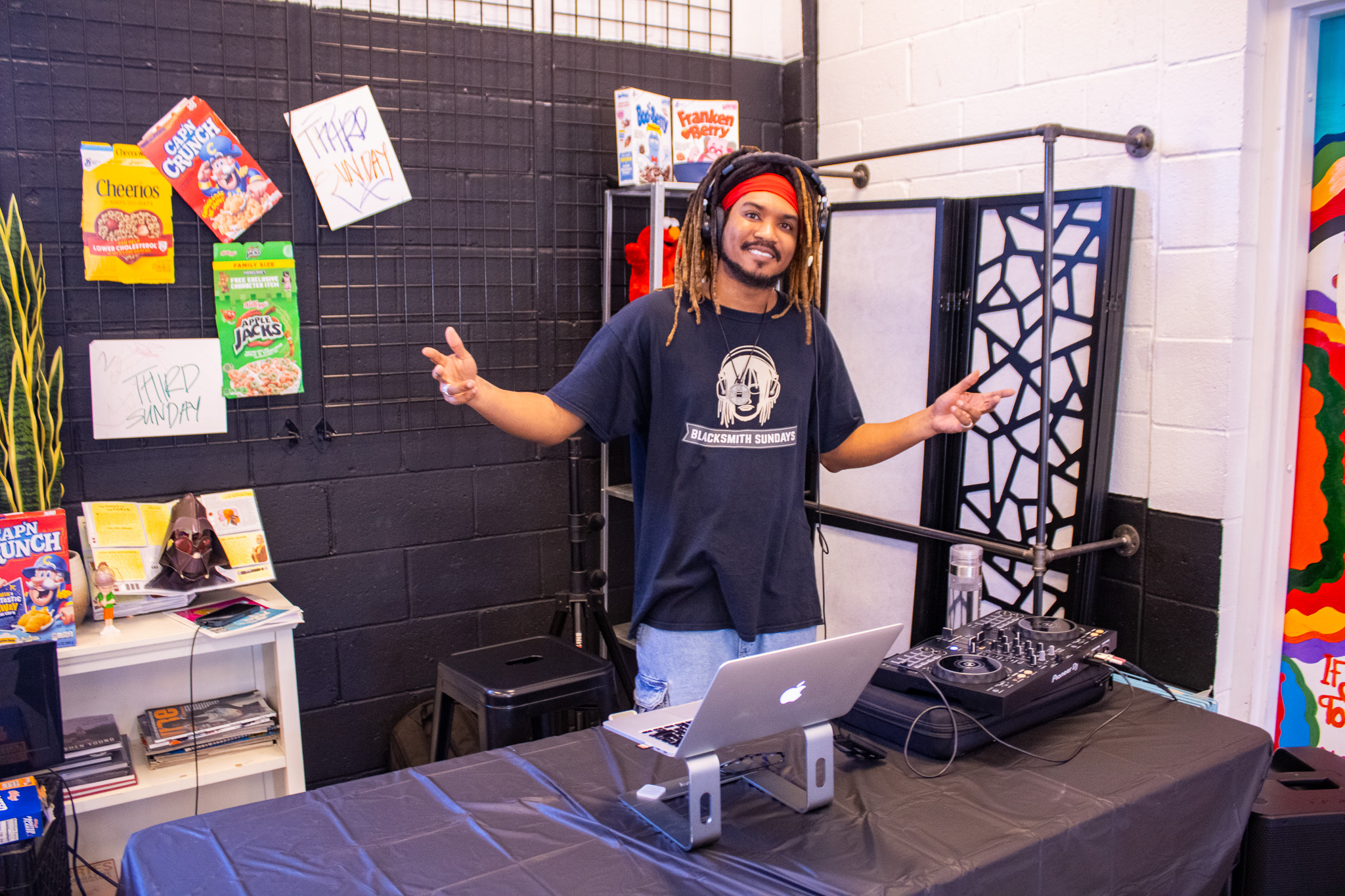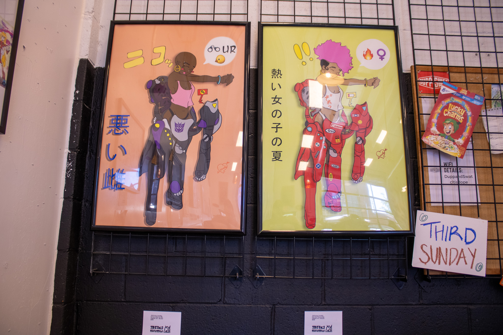 The majority of Third Sunday’s members come from the same era I grew up in, and it showed in each detail strewn across the room; A small CRT TV with Mortal Kombat II playing off a Sega Genesis, Dragon Ball Z DVD cases posed next to Primal Rage figures and cereal box covers that lined spots all around the back wall did a lot to pleasantly bring visitors back to a different time. 90’s bedrooms and play areas were filled with these objects, and here, decades later, they symbolize what it meant to wake up on a Saturday morning.