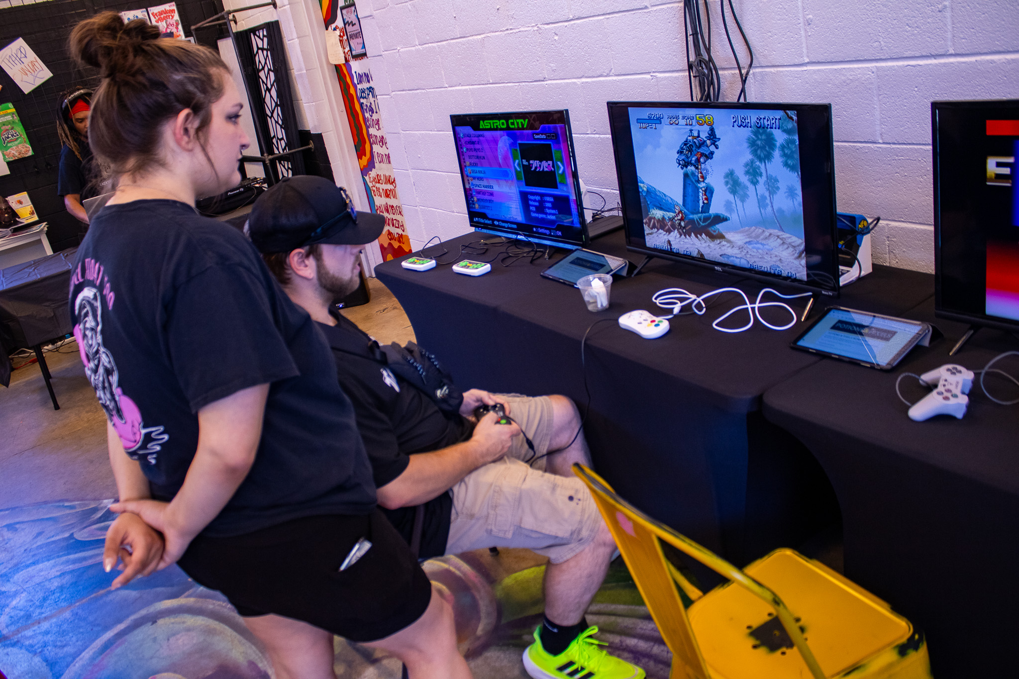 A breakfast sampling was given out to attendees, with the choices being between small portions of tenders and waffles, or General Mills’ cereal bars, allowing for an on-the-go experience, whether checking the art, vibing to resident local DJ Blacksmith Sunday’s brand of Toonami-inspired tracks, or kicking back and picking up controllers for a couple rounds via the game stations provided by Potions & Pixels.