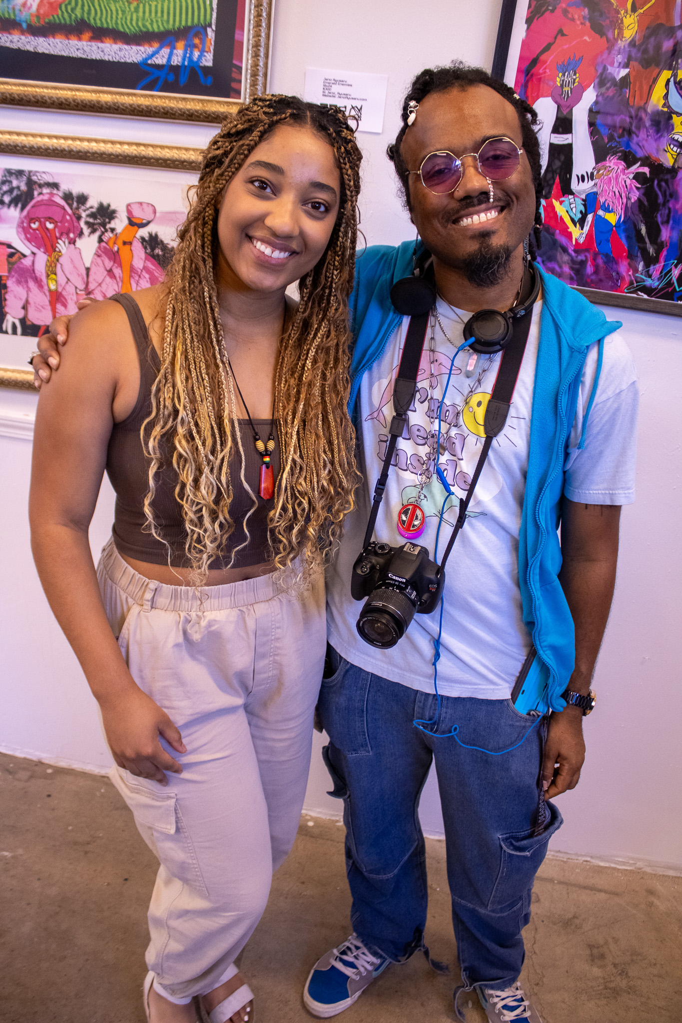 There were also pieces that weren’t as direct in their inspiration, but still kept with much with the gallery’s style and odes. Yesterday’s Cupid’s “NegrO’s” presents both the fears growing up in black adolescence and the disdain for the powers that be, illustrated like a campy cereal box ad to soften the images while hiding none of the themes. Quincy Woodard’s “Merge” puts the imagination on display within the abstract universe of his canvas. Finally, Johnny Lovely’s “Hot Girl Summer” presents a pair of pieces with inspiration drawn from mech anime with the robotic suits being taken off as their female operators use the opportunity to cool down.